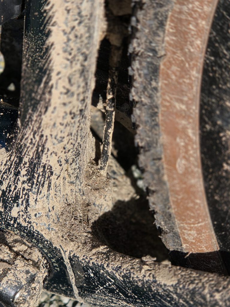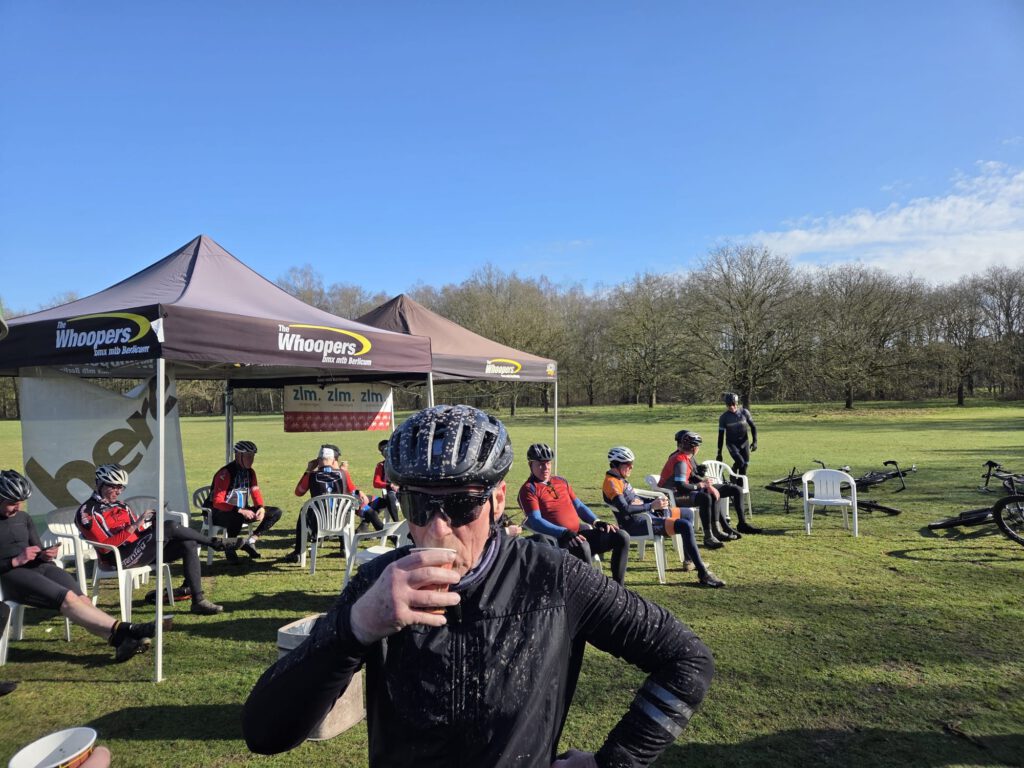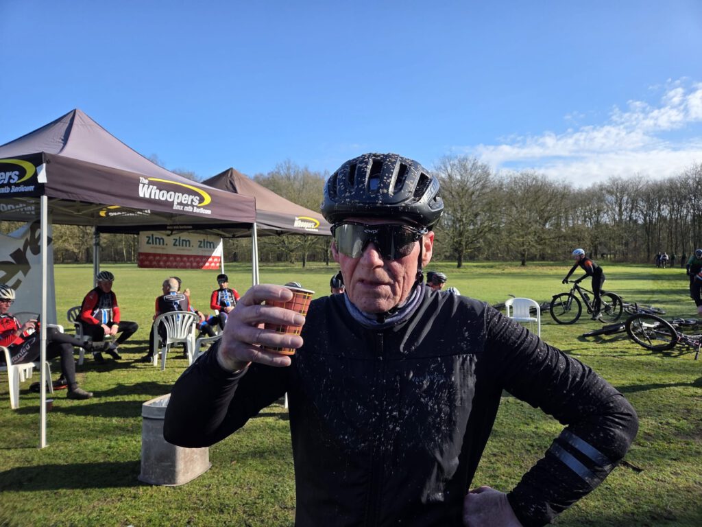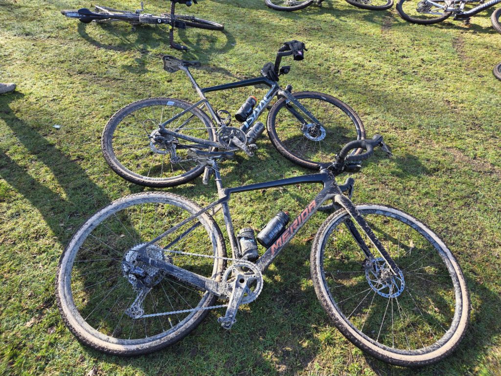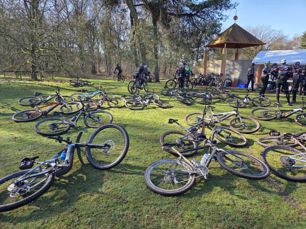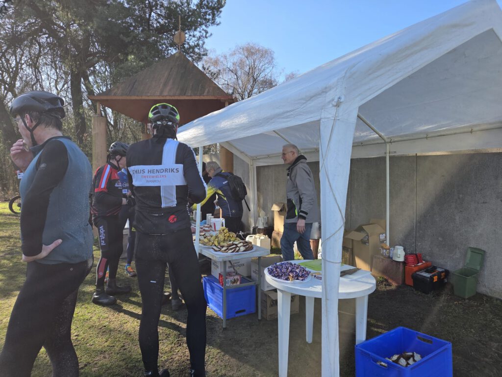 Verder gebeurde er eigenlijk weinig spectaculairs. We genoten van een voorzichtig zonnetje en bij de pauze kregen we soep en ontbijtkoek. Daar zagen we ook hoe onze fietsen erbij stonden: onherkenbaar. De MTB’s waren veel schoner. Misschien hadden we toch de MTB‑route moeten volgen…