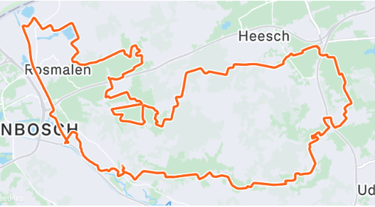 We hadden nu precies 41 kilometer en gingen we verder. Via Vinkel naar Heesch, waar Martijn het tempo weer eens flink opvoerde. Ik waande me in een echte gravelwedstrijd. Met harde tegenwind reden we om Nistelrode heen richting Middelrode. En toen: de finish.
