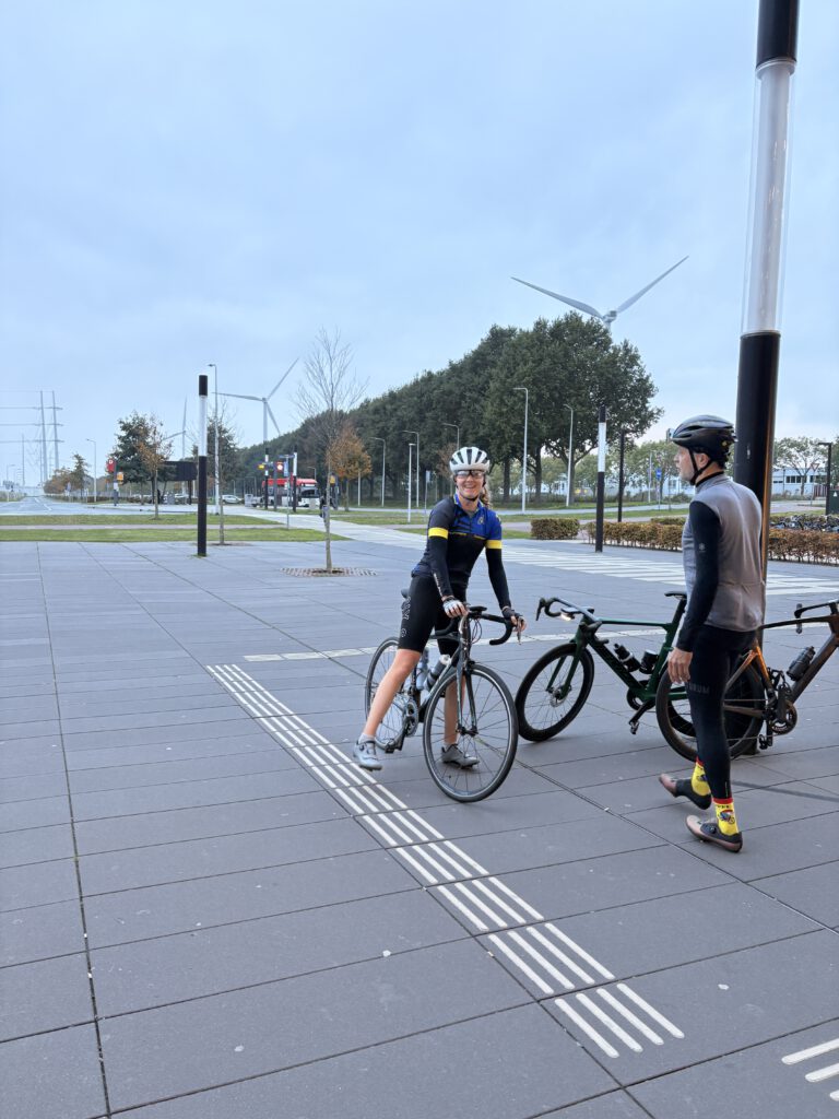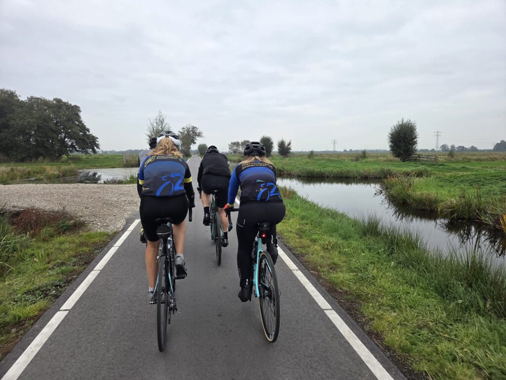 Vanaf Moordrecht nam Martijn de kop. Rob en ik hadden het wel even gehad, want er stond toch best wat wind. Maar Martijn gooide het gas open en we reden in één lijn naar de finish, en Romy met een cadans van 90 en Ingrid geschakeld op 50×11 of 10 klaagde niet, het eind kwam in zicht 😊