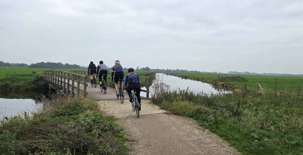 We vertrokken richting Westerpark, over de Waaierbrug, de Driemanspolder in. Romy stampte lekker op kop. In het Buitenpark nam Rob het over en we rolden richting Noord-AA, Weipoort en Koudekerk aan den Rijn.