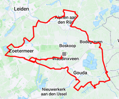 Ik fietste Waddinxveen uit richting Zoetermeer… en toen begon het te regenen. Grote druppels. Tsjonge, daar had ik niet op gerekend. Terug naar huis was geen optie, dus ik reed in mineur naar de start.