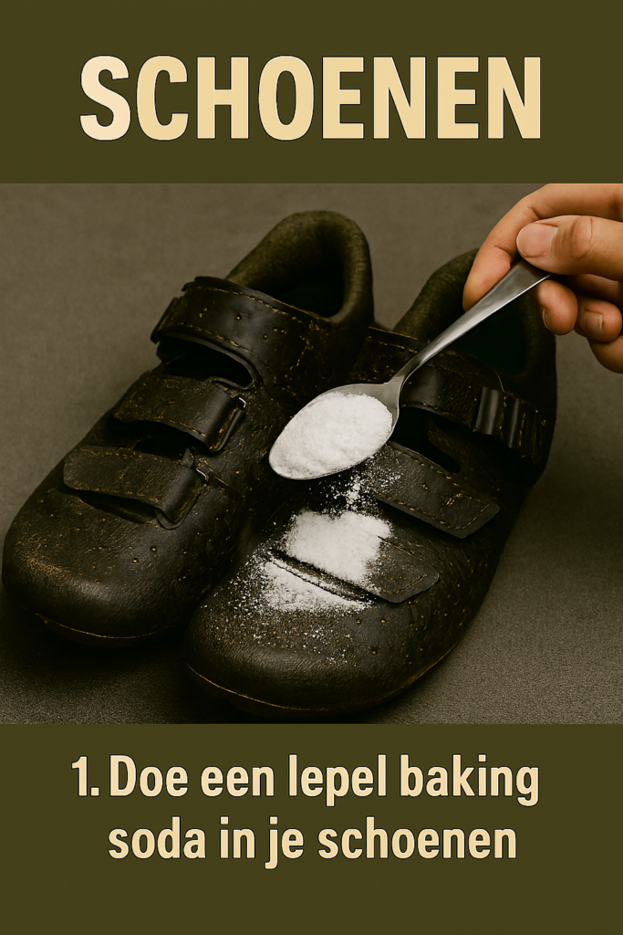 - Doe één grote lepel baking soda in elke schoen.