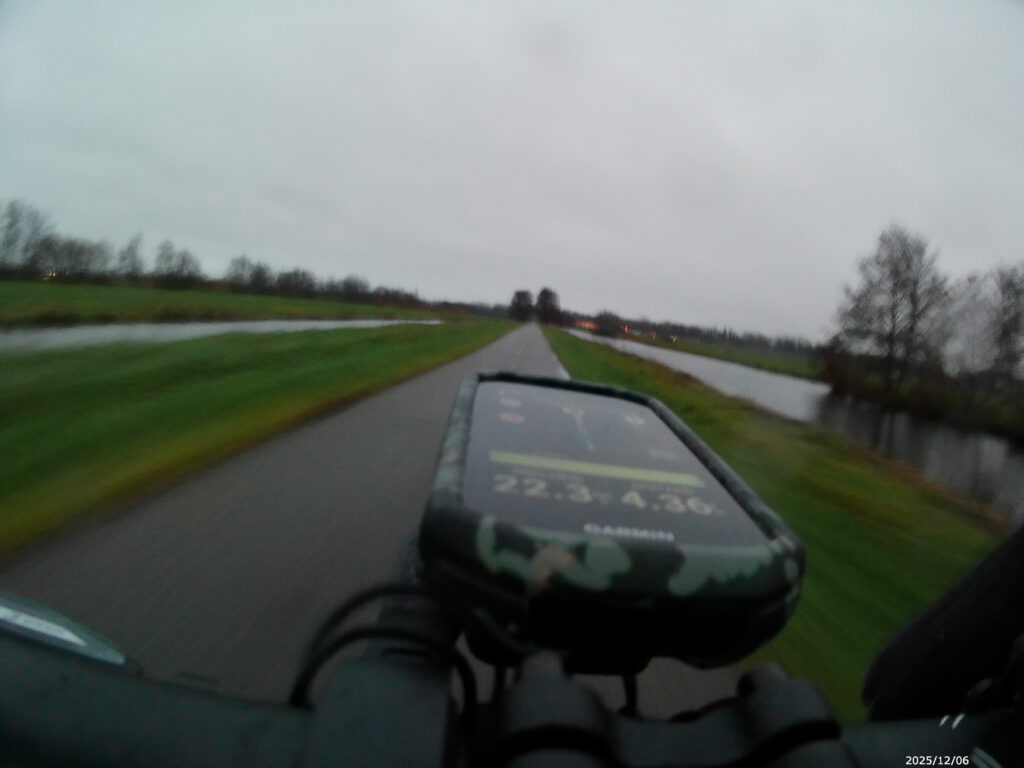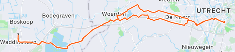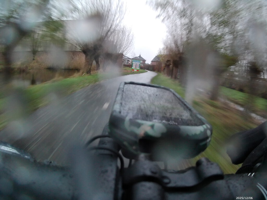 Om 08:00 uur stapte ik op de fiets. Het eerste stuk ging prima, maar bij de Reeuwijkse Plassen begon het te regenen. En niet een beetje, nee: nat, heel nat. Omkeren is geen optie. Dus trapte ik door richting Woerden. Eigenlijk best een leuke route, lekker binnendoor en met dat rotweer geen kip op de weg.