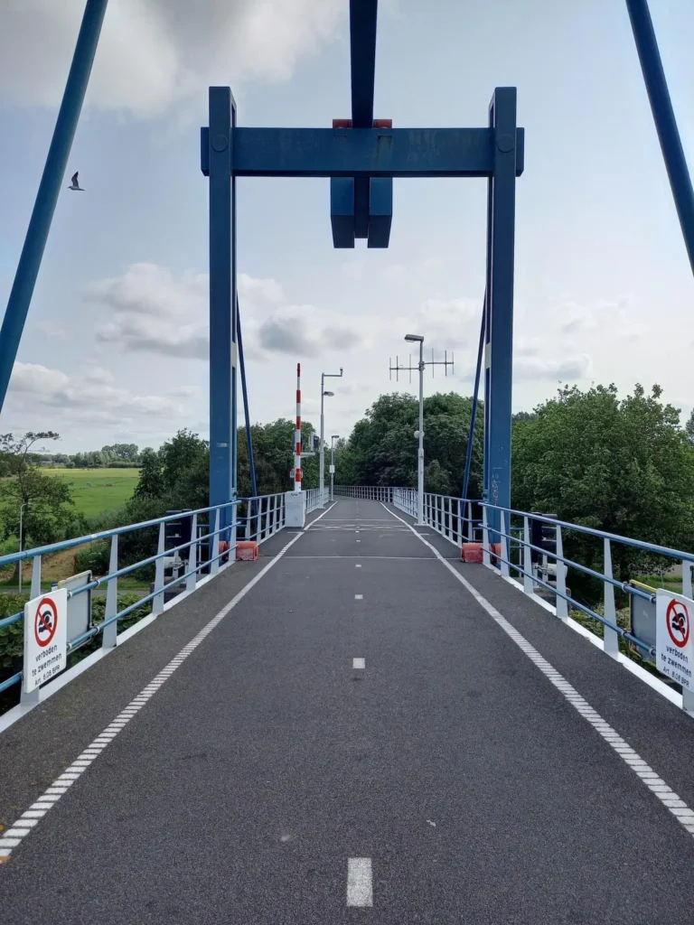 Op 30 km kom ik bij de Zweth en ga ik over de Kandelaarsbrug. Dat is een ophaalbrug over de Delftse Schie. Hij is 46 meter hoog, dus even op de pedalen en je bent erover.