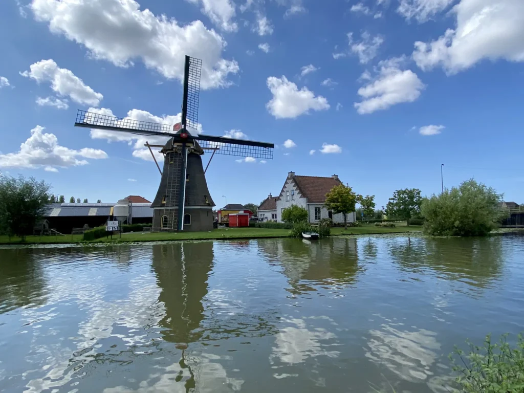 Op 37 km rijd ik door de polder langs molen De Kopershoek in Schipluiden. Altijd mooi om te zien, en veel toeristen stoppen hier voor een foto.