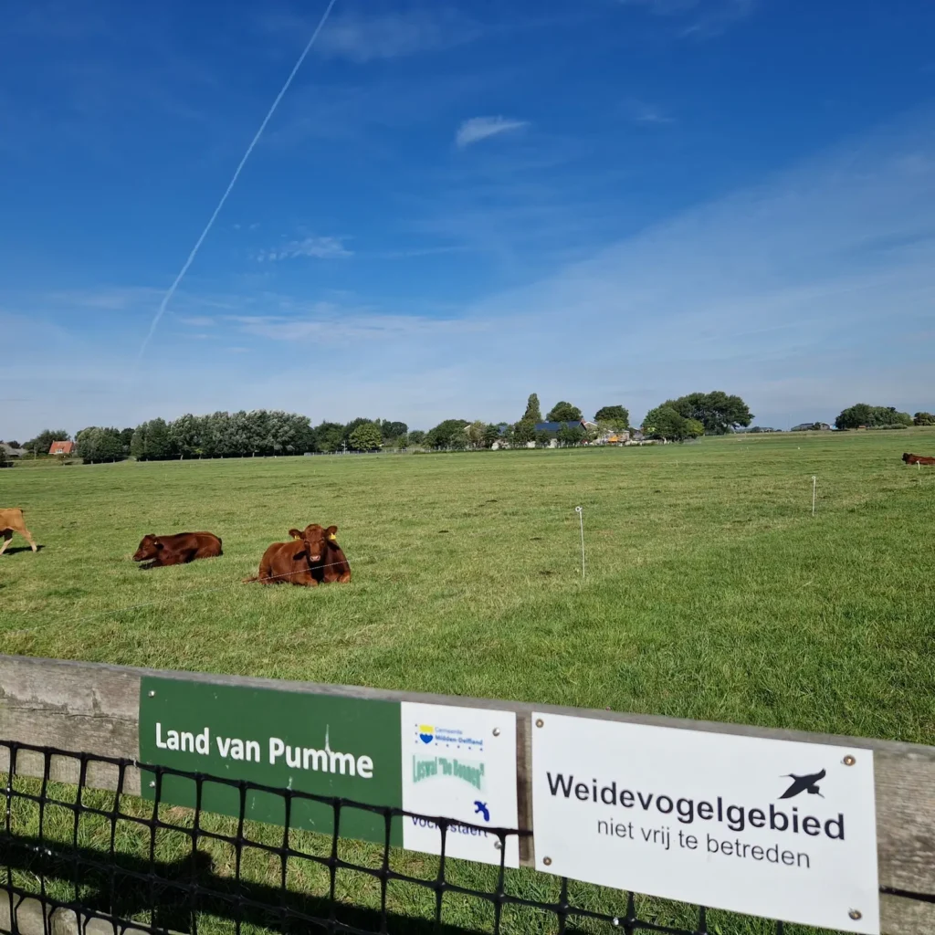 Op 76 km zie je goed hoe vlak het westen is. Het Land van Pumme is nu een weidevogelgebied. Je kunt er heel ver kijken; in de verte zie je al de Trambrug van Schipluiden, maar je moet nog een stukje omrijden.